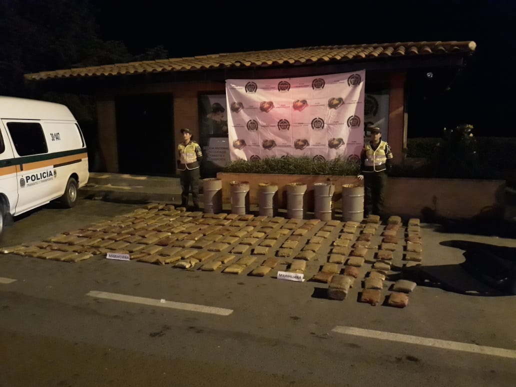 Unidades de la Seccional de Tránsito y transporte, mediante controles sobre la vía Villarrica- Palmira, lograron la incautación de 350 kilos de marihuana tipo creepy, los cuales se encontraron en el interior de un vehículo tipo automóvil, cubría la ruta corinto- Cali, un hombre fue capturado y un vehículo inmovilizado, fueron puestos a disposición de la Fiscalía URI de Palmira por el delito de Tráfico, fabricación o porte de estupefacientes y en la vía mediacanoa- la Virginia, fue captura otra persona, se inmovilizó un vehículo y se incautaron 100 kilos de marihuana tipo creepy, sustancia transportada en modalidad caleta doble piso.