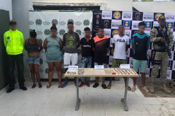 Los capturados son “el cuchara” de 27 años de edad, “el quesito” de 38 años de edad, a quienes se les incautó 95 papeletas de bazuco, 2.000 dosis de marihuana, un revólver, munición y prendas de vestir de uso privativo de las fuerzas militares. También fue capturada una mujer conocida como “lory”, compañera permanente de “el cuchara”, quien portaba más de 100 dosis entre cocaína, marihuana, bazuco.