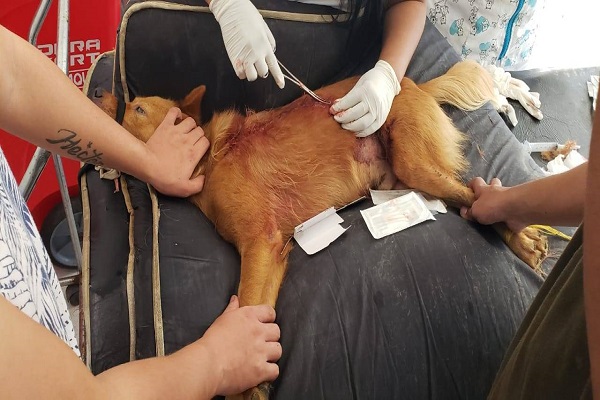 El animal fue encontrado cerca de la Estación de Policía de ‘Pie de Pató’, con manifestaciones de dolor y agotamiento por una grave herida causada con un elemento corto contundente (Machete)