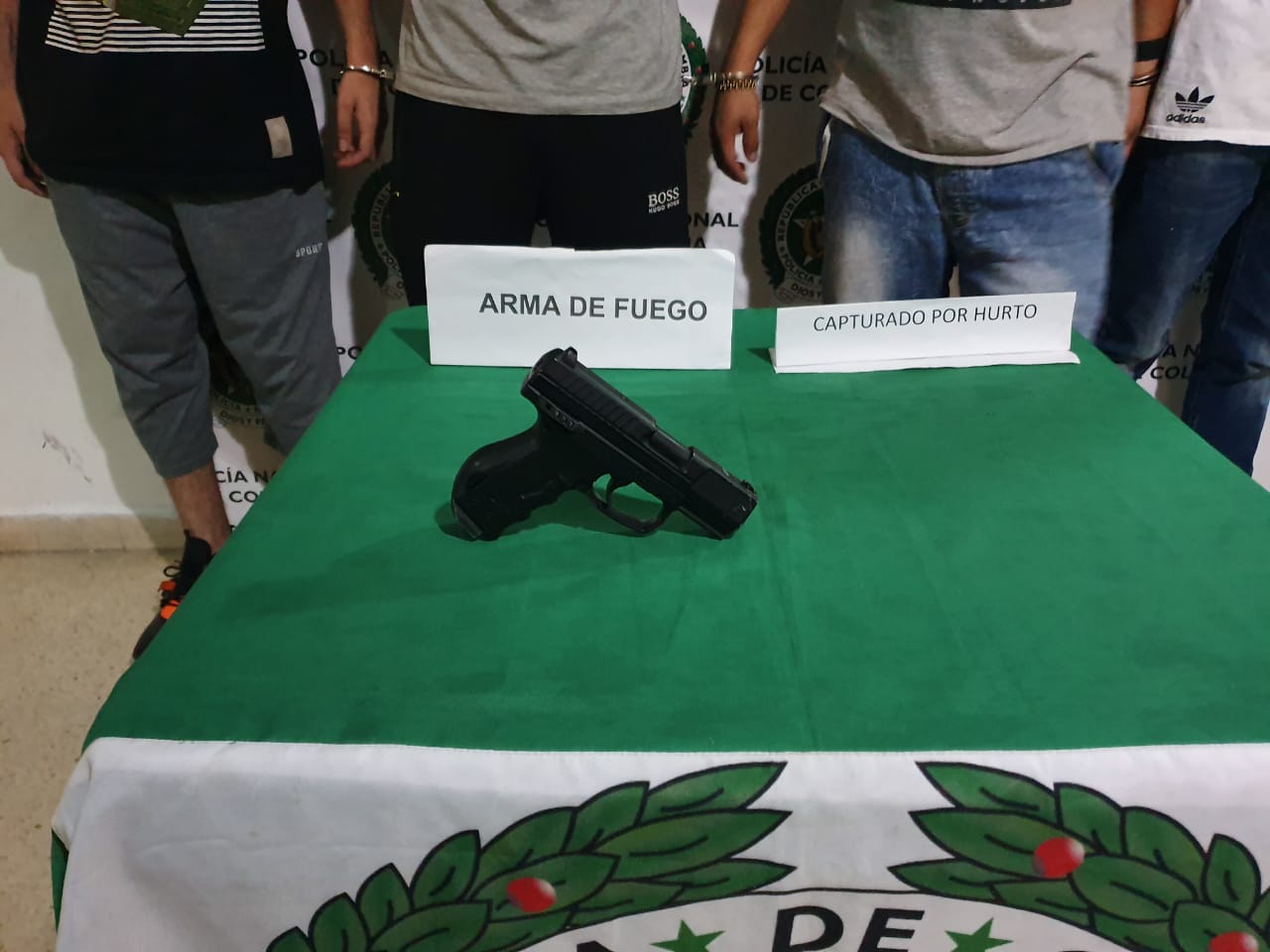 Tras la articulación de las cámaras de seguridad con los efectivos policiales de los cuadrantes, fueron sorprendidos cinco hombres con edades entre los 19 y 20 años, en la carrera 63 con calle 33 del barrio Conquistadores, cuando huían en un vehículo después de cometer un hurto a un establecimiento comercial del barrio Boston de Medellín. Al ser registrado el automotor se les halló en el baúl, un arma traumática tipo pistola marca Walter CP99 Compact, calibre 4.5 milímetros.